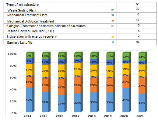 VALOSUL has a treatment infrastructure of 2 landfills; 1 Organic Valorization Plant; 1 Energy Valorization Plant and 2 Transfer Stations, according to APA,11 in 2022 around 0.79x106t/year of waste were treated.