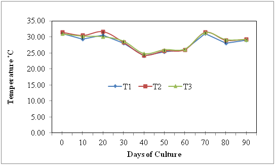 Study on water quality parameters: Water quality parameters (temperature, dissolved oxygen, pH etc.) of the experimental ponds were monitored and recorded at every ten days interval throughout the culture period. All the parameters were measured using surface water at the pond site.