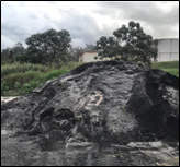 The sugarcane bottom ash used comes from the Santa Terezinha Sugar Mill, located in the district of Iguatemi, in the city of Maringá-PR. The plant has two boilers, with a working temperature between 500 °C and 700 °C. The bottom ash (Figure 3) was transported to the Soil Laboratory at the State University of Maringá, dried at room temperature, until hygroscopic humidity, homogenized and passed through a No. 10 sieve (2 mm), in order to remove undesirable materials incorporated during storage, such as leaves and pieces bagasse with incomplete burning, resulting in the appearance shown in Figure 4. Afterwards, the ash was stored in a drum for further characterization.