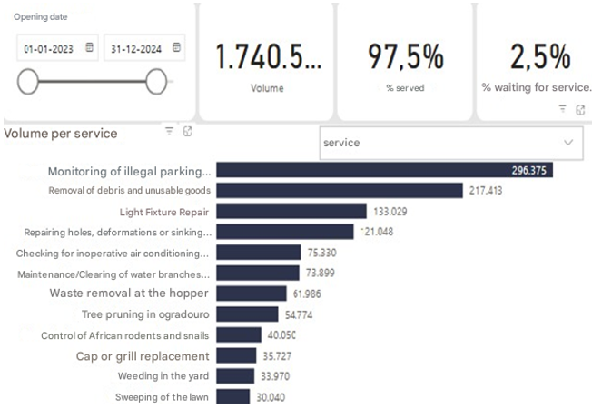 According to the City of Rio de Janeiro,10 channel 1746 receives an average of 10,000 records per day. Since its creation, more than 30 million interactions have been carried out, with resolution rates above 80% in several services (Figure 1).