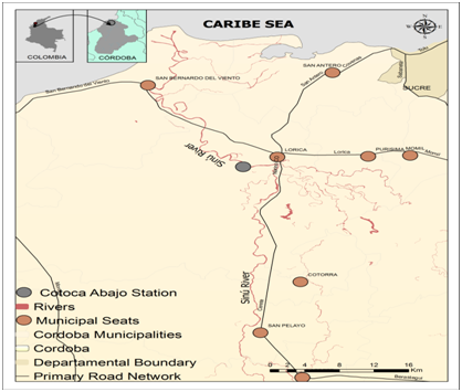 The Sinu River originates from the Nudo de Paramillo (Colombia), travels across 380 Km before flowing into the Caribbean Sea of Colombia, its basin has an area of 15.600 Km2 and is 266 Km2 from the mouth a hydroelectric power station was constructed. The more important commercial fish from the Colombian rivers are the known reofilics fishes among which stand out carácidos of the genus Prochilodus, Brycon, Leporinus and silúridos such as Pseudoplatystoma, Sorubim, Pimelodus, Brachyplatystoma, among others. Those fish abandon the swamps and migrate upstream in the dry period in order to secure areas of maturity; in the Sinú river this event generally occurs between October and February of each year. Subsequently during the rainy period (April–October) they reproduce, considering the months from April to July as those of greater reproductive activity. Then from spawning they return again to the swamps or flood plains where they recuperate and initiate a new reproductive cycle. One of the exceptional characteristics of the reofilics fishes is their reproduction (courting, mating and spawning) occur in the principal canal of the rivers; as well as the incubation and hatching of the larvae, those products called icthyoplankton are transported to the flood plains (swamps) when they are soon ready to initiate exogenous feeding.1–3