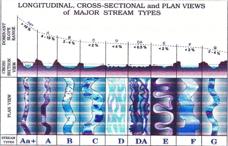 River morphology is related to the physical condition of the river geometry, the type, nature, and behavior of the river with all aspects of the changes in space and time dimensions, thus involving the dynamic nature of the river and its environment are interrelated with each other.2 In the determining of river morphology is needed geometry data, covering a wide river, depth, cross the river, the coordinates of the location and slope of the riverbed. According to Rosgen3 types of river morphology are shown in Figure 2.