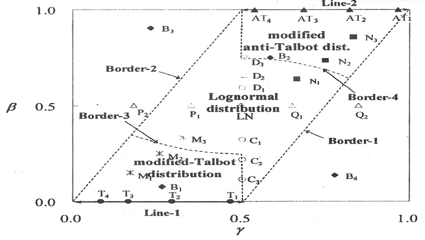 According to Sulaiman,5 to calculate a value of riverbed sediment porosity is done with the following steps. First, the bed material on each point representing top, middle and bottom material is sieved to obtain grain size distribution. Furthermore, a type of sediment distribution is determined based on the value of γ and β parameters, which is calculated by the following equations: