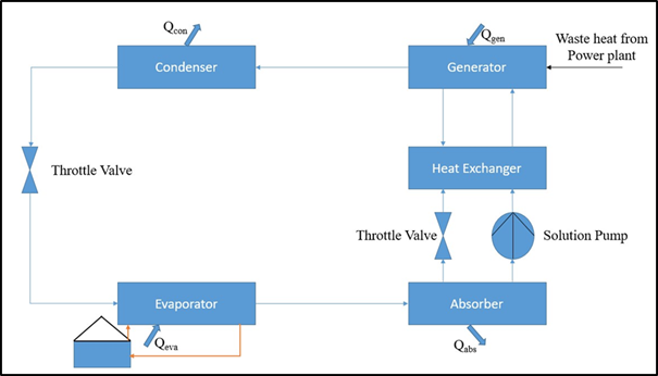 This study presents a thermodynamic analysis of ACS and an innovative approach to harnessing the waste heat generated by a coal-based power plant for powering an ACS in order to achieve sustainable and efficient cooling solutions. The proposed system utilizes the waste heat from the power plant, which would otherwise be dissipated into the environment, to drive an ACS. The system operates on the principle of utilizing a refrigerant-absorbent pair, typically ammonia-water, to produce cooling effects through the absorption and desorption of refrigerant vapor. By employing this technology, the system eliminates the need for the conventional electrically driven system, resulting in reduced electricity consumption and greenhouse gas emissions. The design of the ACS involves capturing the waste heat from the power plant's flue gases and transferring it to a generator that provides the necessary thermal energy for the absorption cycle.