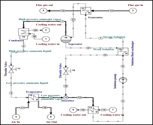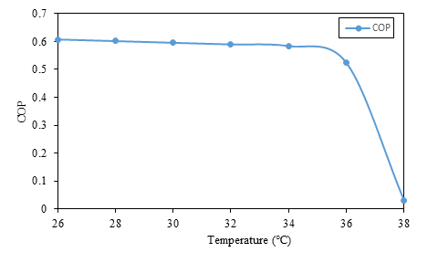Finally, the COP of the system is calculated, which is the ratio of heat transfer through the evaporator to the sum of heat transfer through the generator and the work done through the pump. The pump work required in the absorption system is very small that can be neglected.15
