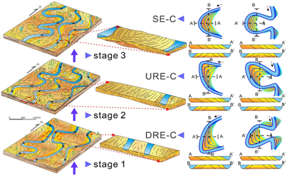 As the seismic data is more and more precise, the techniques of seismic have provided a decent way to study the migration process of underground paleo-channels. The seismic architecture models are used to illustrate the model of rivers.32,53 High-quality 3-D seismic data is usually combined with the core and wire line log data to reveal the sedimentology and stratigraphic architecture of meandering process.45