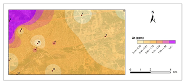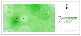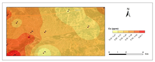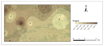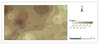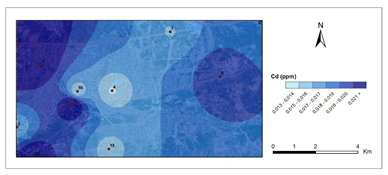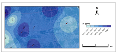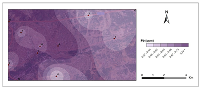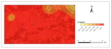 Figure 5 and Figure 6 show pollution maps of Kırıkkale city based on the research. It is evident that the lichen, P. furfuracea, accumulated heavy metals which consequently acted as an effective "bioindicator" in the general maps (Figure 7).