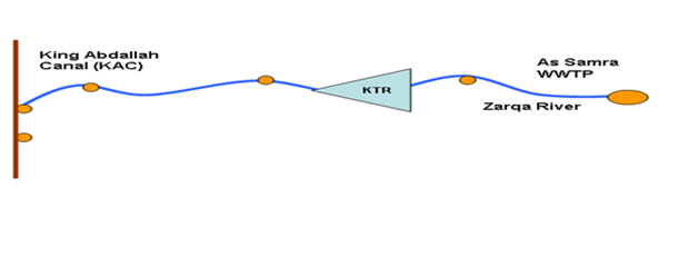 Figure 1 Flow of treated wastewater from the source (WWTP) into Zarqa River then into KTR until it ends into King Abdullah Canal.