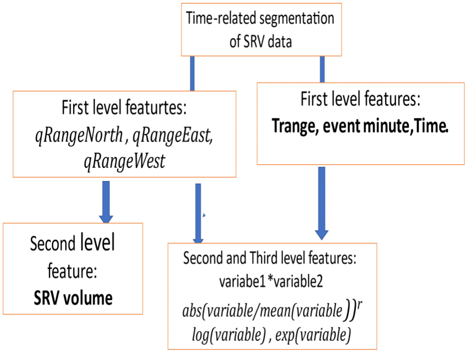 Specific form of second level engineered variable is defined as product of several features constructed at the first level. This type of variable is used for SRV calculation. SRV is defined as the volume of orthogonal 3D parallelepiped and is calculated according to Eq. 21.