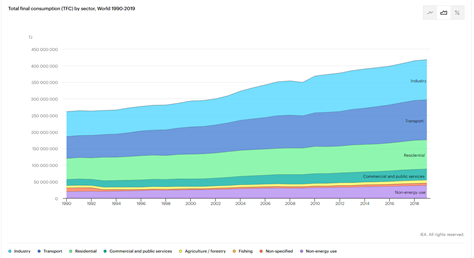The population growth and fast development of industries have expanded global energy requirements. The energy consumption of industries is very high worldwide. In 2018, the total industrial energy consumption was 157 EJ, which was 37% of the total energy use throughout the world. Total energy consumption rose by 0.8% in 2018 and 1.6% in 2017, and there was a total annual increase in energy consumption of 0.9% over the last nine years of the 2010-2018 period.1
