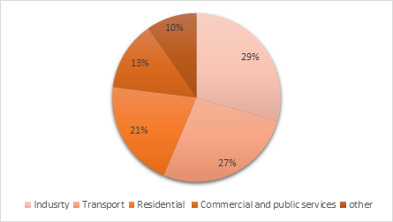 The primary energy source distribution of Turkey is seen in Figure 2. As in the global distribution, in Turkey, industry is the largest energy consumer, with 29% of the total final energy consumption, followed by transportation with 27%, and with both showing outstanding increases over the last ten-year period.5