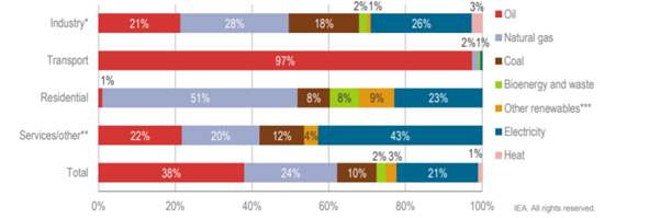 The goods and service industries consume various sources of energy including gas, oil, coal, and electricity for their production processes. However, in Turkey, the basic energy source used in all sectors is fossil fuels, and of the energy sources consumed by industry, one-third is electricity (Figure 3). A mix of oil, gas, coal, and electricity is consumed in industry and services. Although most of Turkey’s energy demand is supplied by fossil fuels in all sectors, electricity has an important place as the third-largest energy source in Turkey.10