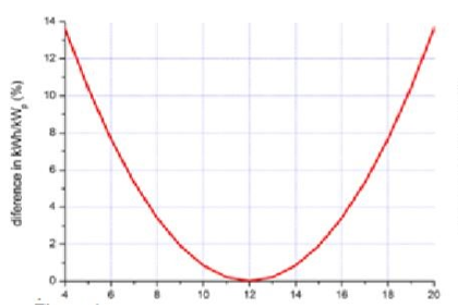 In many studies in the literature, the performance of bifacial panels has been compared to that of the older technology of monofacial panels. In their study, Van Aken et al.27 collected data on monofacial and bifacial panels under the same external conditions and found differences in the gains on the back of the bifacial panels according to the time of day and month of the year.27 The net gain produced on the rear side was quite symmetrical and exhibited very small gains at midday, whereas nearly constant gains were achieved when the sun reached negative angles relative to the plane of the module (Figure 4). On the other hand, they noted that the highest monthly gain in summer was due to the increased amount of sunlight at the latitude (52 ° 470 N) of the experimental location (Figure 5). The normalized difference of the bifacial and monofacial kWh/Wp as a function of the time of day (total energy production in kWh over the entire year) is shown in Figure 4 and the normalized monofacial kWh/Wp over the year (extrapolating for August and September) in Figure 5. These experiments were carried out at 52°470 N and 4°400 E at a low albedo location and 38 ° tilt.
