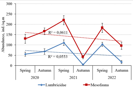 Keywords: seasonal dynamics, patterns of number variation, reserves, soil macrofauna, earthworms
