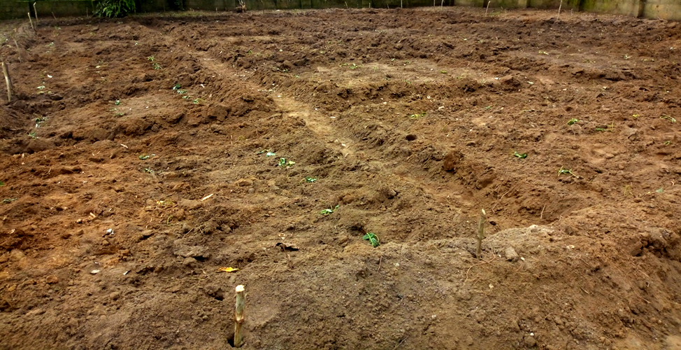 The experimental plots were cleared manually, mapped out employing a split plot using randomized complete block design with three replications. Two tillage practices (conventional and no-tillage) were established and four rates of cattle cud digester (0, 10, 20 and 30 tons ha-1) were used giving eight treatment combination. Each experimental unit measured 9m2 and a vine measuring 25cm was planted per stand at the spacing of 1mx0.5m, giving a total of 18 plants per plot. The cured cattle-cud mulch was applied one week after planting (Figure 2).