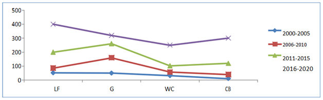 Figure 4 Range land utilization change in number from 2000-2020 in the Danbal-Waccu (A2) area (data generated based on the local community interview result) as a result of rehabilitation.