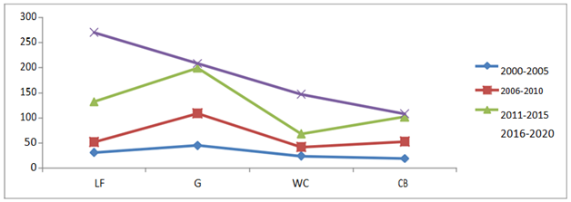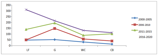 Note: LF, livestock fattening; G, grazing; WC, wood cutting; CB, charcoal burning