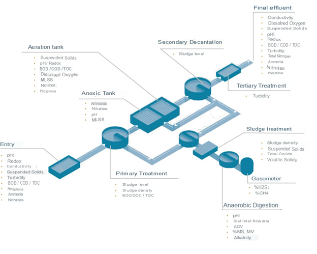 The first then appears from an informative perspective to aid in the monitoring of WWTPs, in order to facilitate decision-making and make adjustments that allow improving the performance of WWTPs, both at an environmental, operational and/or energy level. It consists of different informative modules for each stage of treatment, which can be selected/aggregated based on what you want to improve/optimize. Each module will consist of hardware capable of continuously measuring critical control parameters and applying artificial intelligence techniques to estimate parameters in advance, providing alerts, as well as indicating to the operator the action(s) necessary to implement so that adjustments to processes are made prior to the development of problems.