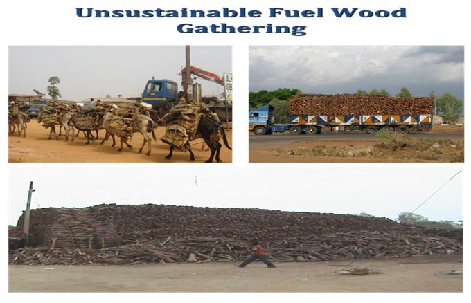 Nigeria has the third highest rate of deforestation in the world: 3.7% or 410,000hectares of forests annually; with some areas in the South losing over 1,000hectares/year. The country has lost almost 50% of its forest resources between 1990 and 2010 when its forest area shrank from 17mln hectares down to 9mln hectares. With continuation of current trends unaltered it is a matter of just a few decades when all Nigeria’s forests might be gone. Unsustainable and constantly growing consumption of fuelwood by Nigerian households is one of the main causes of deforestation. More than half of the 9.6million hectares of rain forest belt in the south of Nigeria have been used to meet the demand for fuelwood in rural and urban areas. Fuelwood use has grown from 50mln m3/year in 1990 up to 70mln m3/year and accounts for significantly higher share of forest product use than, for example, commercial logging; the latter makes only 11mln3/year in 2010 and didn’t register any major changes in the last decades. This increase is largely due to population growth, but also due to the absence of affordable alternatives, especially for the poorest consumers. On the contrary, due to rising prices for fossils fuels, a massive shift from “modern” fuels like kerosene and LPG back to fuel wood has been taking place (“reverse substitution with wood fuel”, according to the FAO). Deforestation is the largest source of GHG emissions in Nigeria: it is responsible for 40% of national CO2 emissions. According to National Communication to UNFCCC, under baseline scenario emissions from deforestation will increase from 9.5MtC/year in 1990 up to 26.5MtC/year in 2030 (based on a conservative deforestation rate of only 2.6%).