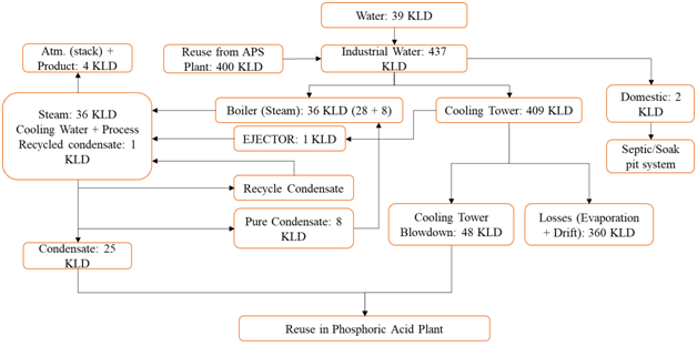 312 KLD with in proposed plant (AS-I) will be recycled in process and balance 25 KLD will be sent to Phosphoric Acid plant for reuse. Hence, complete recycle in plant process. |