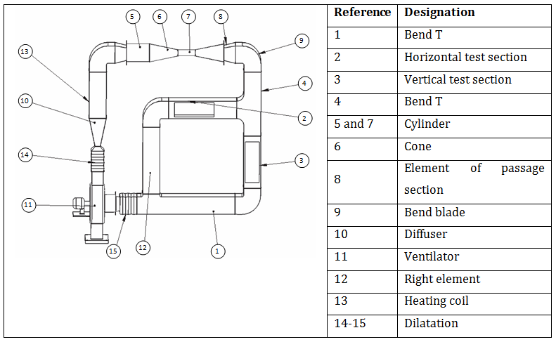 The study of the convective drying kinetics of tomato was carried out using the pilot dryer presented in Figure 1. The used experimental apparatus is a closed loop. The air flow running in the test section is horizontal to the product surface. First, the tomatoes were washed with distilled water and then carefully cut into four quarters. After the setting rate of air flow, the controller starts to heat up to the setting temperature. The air flows into the dryer with the fan; it passes the electrical resistors where it is heated. Once the experimental conditions are stabilized, the sample to dry is placed on the support plate of a balance in the horizontal test section (Figure 1) to establish the drying operation. The drying kinetics were determined from the measurements of the weight variation of the samples over time. These measurements are made using a precision electronic balance digital display. The balance is linked to a computer, and equipped with a data output for the acquisition of the mass over time. The obtained raw results were treated using a Matlab program carried out in this work to eliminate any disturbance caused by air ventilation. This program is founded using the polynomial sliding protocol for 5 by 5 points. The Matlab program calculates also the drying rate. Then the reduced moisture content evolution was presented versus time and the drying rate as a function of moisture content variation; with : equilibrium moisture content calculated by desorption modelling; : initial moisture content. Experiments were investigated on two levels of air temperature (45 and 55°C) and two levels of air velocity (0.5 and 1.6 m/s).