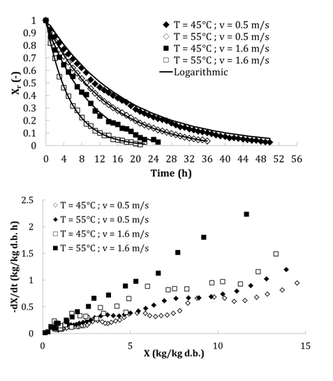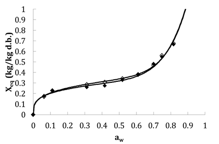 The fitting of sorption isotherms and drying curves allows describing the experimental curves with empirical and semi-empirical models and identifying many useful parameters. Twelve models were tested for fitting of sorption isotherms (Table 2) and twelve models for drying curves fitting (Table 3). Those are the most used models for fitting data of sorption isotherms and drying curves.