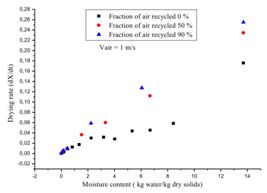 The study of the influence of the different fractions of recycled air (0, 50 and 90%) on the kinetics of drying and the effect of drying on the quality of product to dry was carried out. During the drying operation, there is a double transfer: thermal and mass. To illustrate these transfer movements, there are several characteristic curves called "drying curves".16 To know: