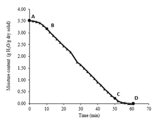 Figure 1 A) Moisture content of okara during the drying process using a microwave oven.
