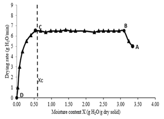 B) Drying rate (g H2O / min) vs Moisture content (g H2O / g dry solid).