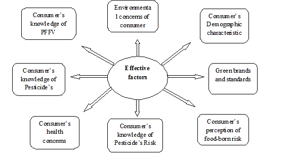 Considering this fact that pesticide-free fruit and vegetables (PFFV) has not been produced comprehensively in any part of country and their production is still at a preliminary stage, this study concentrates on preparation for the marketing of these products and it examines consumers’ attitude and information towards them. The first step toward addressing and producing such products is identification of the consumers, effective factors on their decision and power of predicting their actions in the market. One of the most striking features of the pesticide-free fruit and vegetables is their price premium comparing the conventional ones. The results from such studies could reveal the reasons of buying such foods by a group of consumers with higher prices and denying them by other group. It also would determine what kind of characteristic would increase consumer’s utility and result in buying such food stuffs and what other features would restrict consumer’s willingness5,6 to pay for such products.