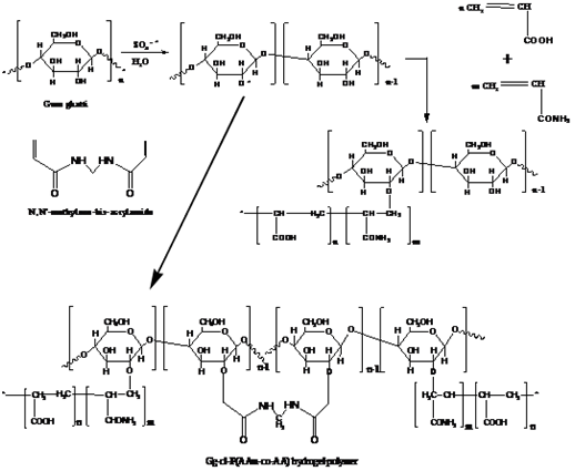 Figure 2 Mechanism for the synthesis of Gg-cl-P (AAM-co-AA).19