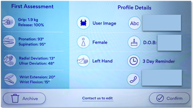 The choice of this platform was due to the advantages presented over the other equipment: its approximation with the movements performed in real context; the added value of enabling the evaluation of ranges of motion and grip strength; the fact that it allows the realization of grip force associated with the various movements of the wrist; the diversity of games available. Another reason for choosing GripAble was because there is a good correlation with Jamar (a dynamometer most used as an instrument for assessing grip strength).