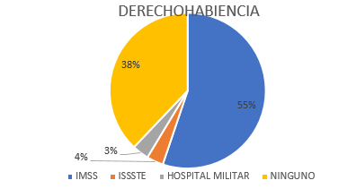 When interviewing patients about the medical service they have, it was found that 16 people (56%) have IMSS, 11 people do not have rights (38%), 1 person has a military hospital (3%) and another 3% to ISSSTE (Figure 4).