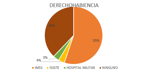 When interviewing patients about the medical service they have, it was found that 16 people (56%) have IMSS, 11 people do not have rights (38%), 1 person has a military hospital (3%) and another 3% to ISSSTE (Figure 4).49