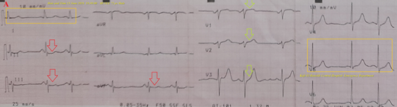 Sildenafil was the first approved US FDA phosphodiesterase-5 inhibitor (PDE5-I) drug used to treat erectile dysfunction (ED) on March 27, 1998, and pulmonary arterial hypertension.1,2 It is available as oral tablets of 25 mg, 50 mg, and 100 mg strength for ED.2 Hypotension especially in patients who are on alpha-blockers, priapism, non-arteritic anterior ischemic optic neuropathy (NAION), headaches, flushing, dyspepsia, nasal congestion, back pain, myalgia, nausea, dizziness, and rash are commonly reported adverse effects.2-4 Allergic angina and allergic myocardial infarction (MI) are broad-spectrum mast cell activation disorders accompanied by acute coronary syndromes (ACS) and are known as Kounis-Zafras (KZ) syndrome.2,5 Allergic angina was first described by Kounis and Zavras in 1991 as an “allergic angina syndrome”, “allergic angina” or “allergic myocardial infarction”.6,7 The main mechanisms include the inflammatory cytokines mediators released through mast cell activation during a hypersensitivity reaction triggered by food, insect bites, or drugs. There is a subsequent coronary artery spasm (CAS) with possible atheromatous plaque erosion or rupture.7 The allergic angina commonly starts within one hour of exposure to the offending allergen. Longer onset KZ syndrome also has been reported.8 Variant presentations of the syndrome have been reported.7 Three different variants of this syndrome have been described: Type I occurs in structurally normal coronary arteries with no cardiovascular risk factors. The coronary spasm was suggested with or with no associated acute myocardial infarction (AMI). Type II occurs in patients with pre-existing ischemic heart disease (IHD), in whom the acute release of inflammatory mediators induces CAS that may lead to plaque rupture and MI. Type III occurs in patients with coronary artery stent-associated thrombosis.6,8-10 Sinus arrhythmia is a variation of normal sinus rhythm (NSR) that is associated with an irregular rate in which the change in the R-R interval is greater than 0.12 seconds. The P waves are typically monoform which is consistent with atrial activation originating from the sinus atrial node (SAN). During respiration, intermittent vagus nerve activation occurs, which results in beat-to-beat variations in the resting heart rate (HR). Its presence typically indicates good cardiovascular health.11 A wavy triple ECG sign (Yasser’s sign) is a new specific diagnostic sign seen in 97.3% of the cases of hypocalcemia. Wavy triple ECG sign can be used as a therapeutic guide in patients with hypocalcemia.12 A wavy double ECG sign (Yasser’s sign) was also prescribed in hypocalcemia which is mostly seen with either tachycardia or bradycardia.12,13 Mild COVID-19 infection means you have symptoms like cough, sore throat, and fatigue, but no dyspnea. Most patients who have mild COVID infections can be treated at home.14