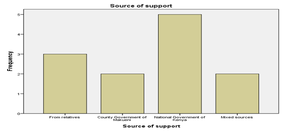 The study found that 2 (16.7%) of the respondents were receiving support only once per year, 5(41.7%) were receiving support 4 times a year while the other 5(41.7%) received support many times indicating it was regular. Further, the support from the County Government was only received once per year and the beneficiaries kept on changing hence a challenge of reliability. Overall, the 41.7 percent that reported to be receiving frequent support also were found to be living in better conditions. In another study investigating the effect of cash transfer programme on older person’s wellbeing in Garissa County, the researchers found that the frequency of cash payments to beneficiaries had the second greatest influence after amount.9