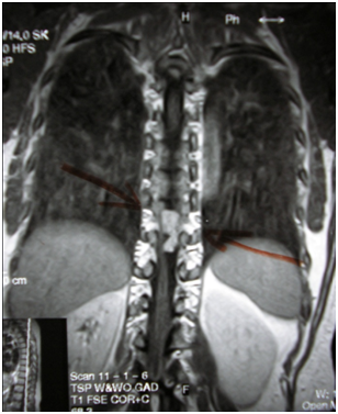 Figure 2 Schwannoma at T9-T10, frontal view.