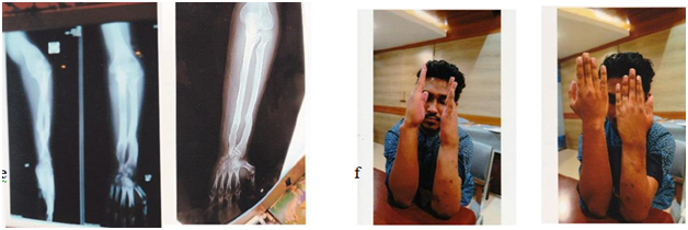 As with any deformity correction adequate preoperative planning and analysis are imperative. We shall have to plan staged surgeries-for example to reduce the radial head after gradual transportation of the radius. Correction of forearm by corrective radial osteotomy and ulnar lengthening by distraction osteogenesis through Ilizarov technique is an unique method for MHE OR HMEs.5,6