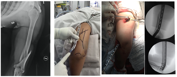 Surgical treatment for diaphyseal fractures of the distal humerus in its distal portion is the management standard5. Minimally invasive techniques have been gaining popularity, allowing the avoiding extensive dissection and disruption of vascularity and access to the fracture site, showing adequate functional outcomes.6–12