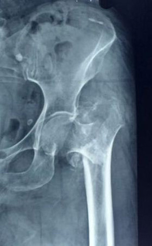 Though, postoperative non-union of intertrochanteric fracture is relatively rare, we had 2 cases of cutout leading to non-union. Factors contributing for non-union were fracture fixation in varus, superior placement of screws, osteopenia, and unstable fracture geometry. In our cases, even after fixation of a fracture with PFN, local instability at fracture site persisted leading to abnormal stresses and the fixation failed to provide a stable mechanical environment for fracture healing. One patient underwent arthroplasty procedure while other opted for implant removal only. Radiographic images of one patient are presented in Figure 5.