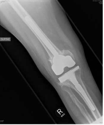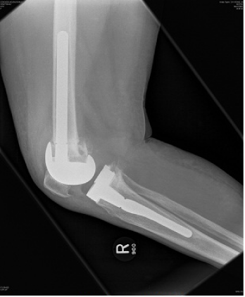 Results: At 6 weeks, the patient was fully weight bearing without any aids; radiographs demonstrated bony union with good alignment. At one year, the patient was pain free, with a ROM of 0° to 110° without a quadriceps lag. There was a marked improvement in the WOMAC and VAS scores.