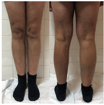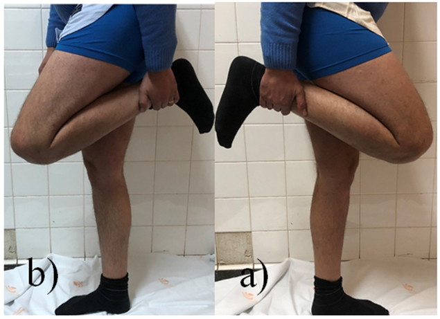 The Patient was immobilized with long leg cast for 4 weeks. At the time of removal, he was showing signs of knee stiffness (-5º of extension and 60º of flexion) and thigh muscle atrophy. An intensive rehabilitation program was started with isometric and closed chain exercises, with partial weight bearing in the first 2 weeks after cast removal.