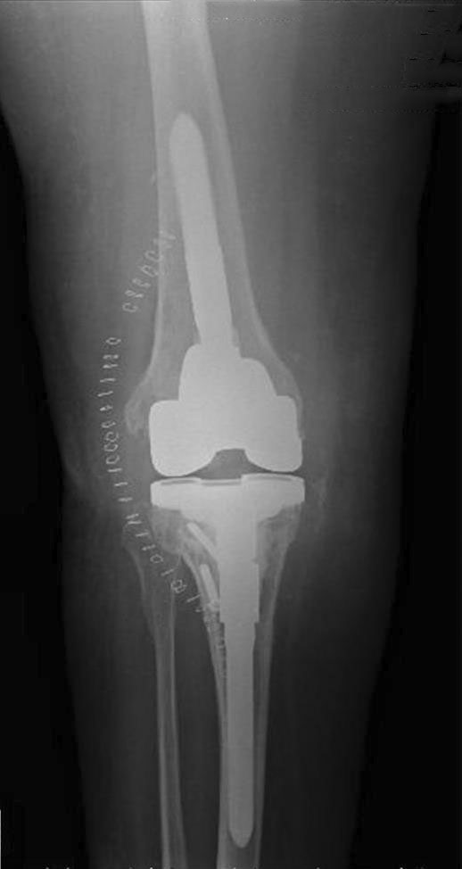Treatment options for managing an infected TKA can be generally categorized as prosthetic retaining, prosthetic exchange and salvage procedure. Belong to first category suppressive antibiotic therapy and debridement with irrigation, which may be performed arthroscopically or through an open arthrotomy. The second category consists on prosthetic removal and subsequent reimplantation. According with the timing of the reimplantation, the exchange procedure is differentiated in early exchange (or one-stage procedure) and delayed or two-stage procedure. In case of one-stage technique the surgeon remove all the implants and cement, and thoroughly debride all infected tissues, excide all sinus tracts if presents, and install new implants using an organism-specific antibiotic cement during the same surgical procedure. The two stage exchange consists on the same meticulous debridement procedure followed by the implantation of an antibiotic-loaded spacer. The spacer acts as local antibiotic-delivery system to maintain limb length and the anatomical relationship of the joint. The second definitive reimplantation procedure is delayed of six to eight weeks; during this time intravenous or oral antibiotic therapy is administered based on recommendations of the infectious disease. A close clinical evaluation of the patients as well as the monitoring of hematological tests (ESR, C-reactive protein) complete most protocols for delayed reimplantation. The optimal outcome of treatment of an infection at the site of a total knee arthroplasty is restoration of a painless, well functioning joint and eradication of infection. In some cases, the infection is eradicated but it is not possible to retain good joint function, in which case arthrodesis or amputation may be the end result, which is considered as salvage procedure.6,10,12,18,23–33