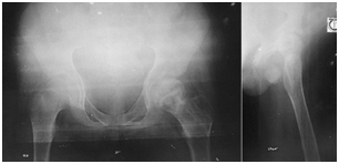 Under fluoroscopic control we reduced the fracture fragment by gentle manipulation and multiple 1.5mm 6 Ilizarov wires inserted below the greater trochanter upto physis to fix the fragments. 6 Ilizarov wires were inserted. 2 Ilizarov rings were fixed in the lower femur with 2 counter opposed 1.8 mm olive wires in each ring. After that all the Ilizarov wires through the neck was fixed with 6 hole plates and the plate was attached with the ring and it was kept for 2½ months. Patient could move with Ilizarov frame easily. Ilizarov frame was dismounted after 2½ months and a temporary hip spica was applied for 2 weeks.4,5