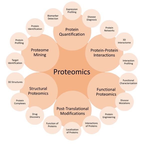Expression proteomics, structural proteomics and functional proteomics are the known types of proteomics following protein mapping and characterization, protein-protein interactions and protein function.1 This method can be divided into three main areas including “protein micro” that can be described as characterization for large-scale identification of proteins with their post-translational modifications “differential display” proteomics for comparison of protein levels with potential application in a wide range of diseases; and studies of protein–protein interactions using techniques such as mass spectrometry or the yeast two-hybrid system. The importance of proteomics in all areas of biomedical and bioscience research should be highlighted as strong evident to understand roles of proteins inside the cell.1 Since it is a powerful set of tools for the large-scale study of gene function directly at the protein level,3 proteomics provide a clear assessment on many subjects and can give information on protein bio-markers, relation between protein structure and function after and before the interactions [i.e., functional proteomics]. Many different areas, such as protein-protein interaction studies, protein modifications, protein function, and protein localization studies can be classified under the sub-studies of proteomics to obtain a more global and integrated view of biology rather than focusing on one sample individually (Figure 1).