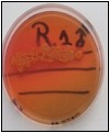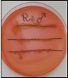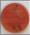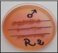 We noticed that R1♂ - R2♂ - R3♂ - R2♀ rats were infected with E. coli due to the presence of bacteria on the three stripes. The review of the presence of E. coli is detected with the naked eye by the specificity of these colonies rounded to salmon color on the middle Hecktoen (Figures 1-4).7 The R1♀-R3♀ rats were not contaminated (Figure 5) (Figure 6) it can be explained by following reasons: