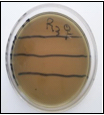 Regarding R1♂ R2♂ and guinea pigs, we found fewer colonies over days (Figures 11-15 for R1♂ and Figures 16-19 for R2♂). For R1♂ the bacterium rate is 10ᶟ CFU/ml in the 2nd, 3rd and 4th day but the number of colonies estimed by the naked eye in the 2nd day >3rd day >4th day; from the fourth day the number of colony is almost nil.