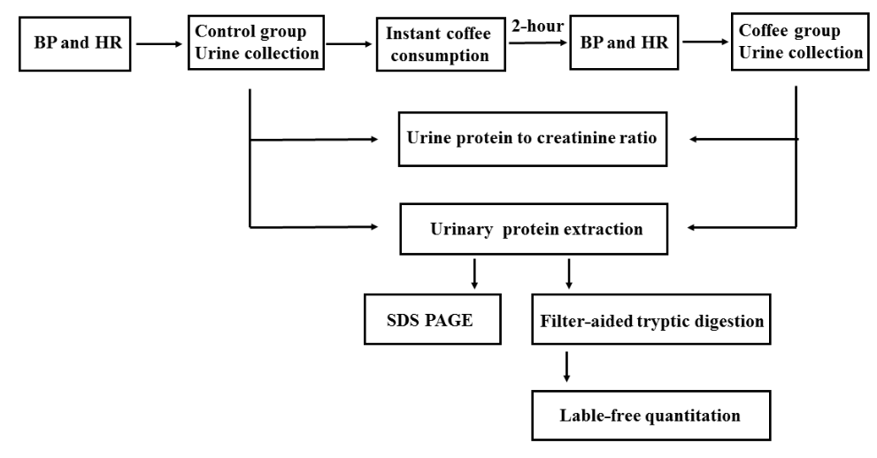 In this study, the short-term effects of coffee on the urinary proteome were investigated using label-free quantitative proteomics. Urine samples were collected before and after coffee consumption. Urinary proteins were identified using liquid chromatography tandem mass spectrometry (LC-MS/MS) (Figure 1).