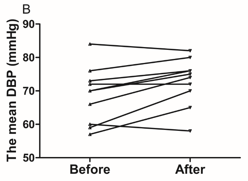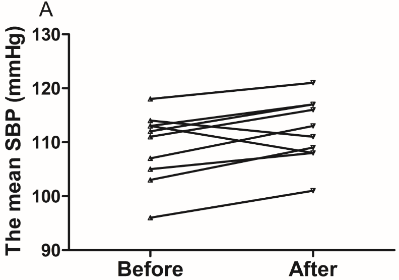 A. SBP increased in eight volunteers. B. DBP increased in seven volunteers. C. All volunteers heart rate decreased after acute coffee intake.’