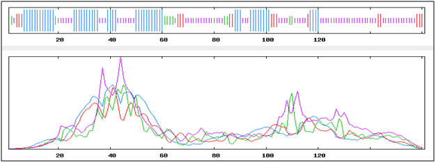 The secondary structure of IGF-I and IGF-IR were predicted by using SOPMA. The predictions of secondary structures in SOPMA were conducted along with the default parameters of window width 17, similarity threshold 8 and number of states 4 (Combet et al., 2000). IGF-I secondary structure prediction suggested presence of alpha helix (32.30%) with 52 and extended strands (11.18%) with 18 numbers. Random coils are predominantly higher (49.69%) along with 80 in IGF-I, whereas comparatively lesser (6.83%) beta turns are observed in the predicted structure composed of 11 numbers (Figure 1).